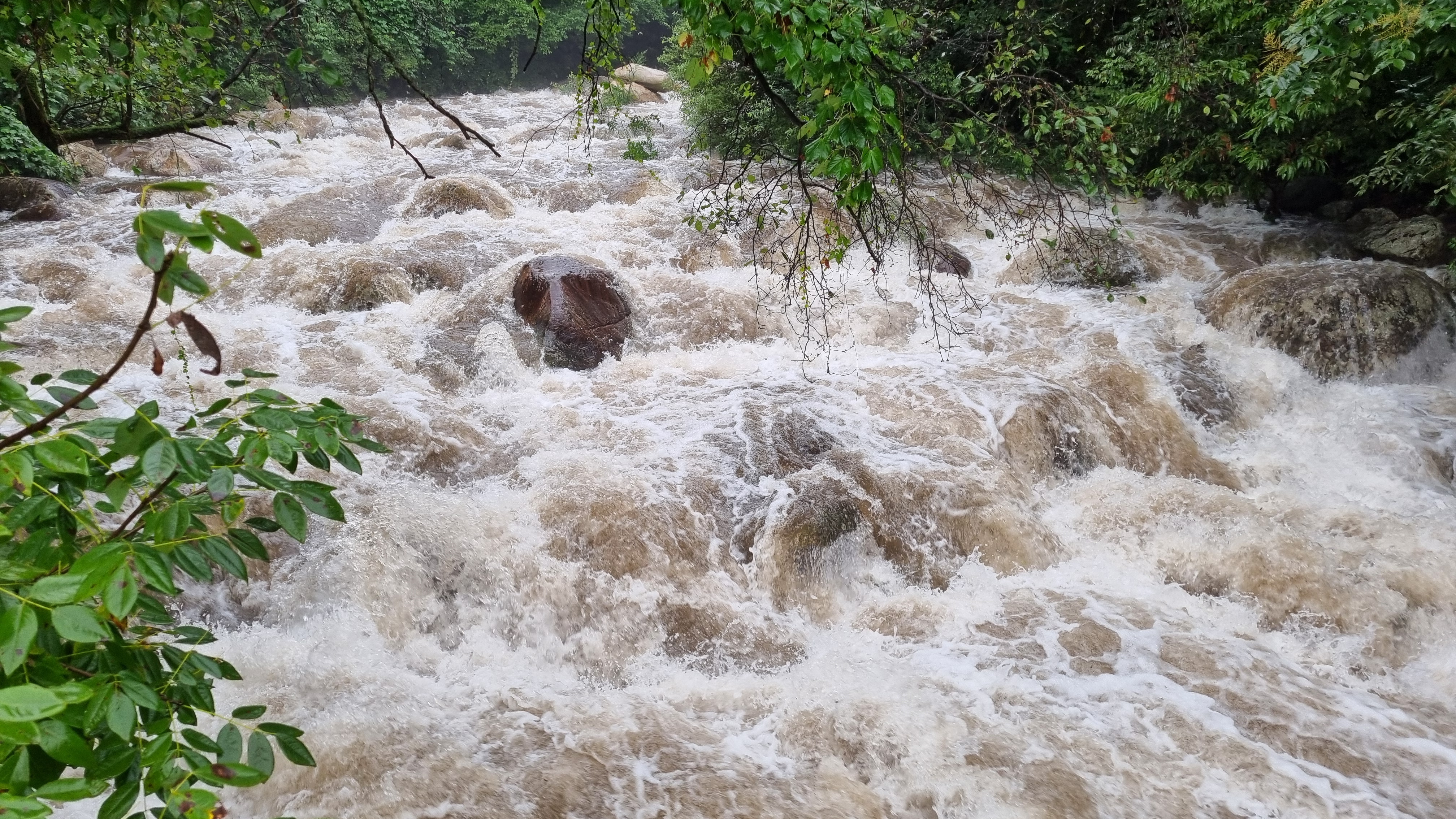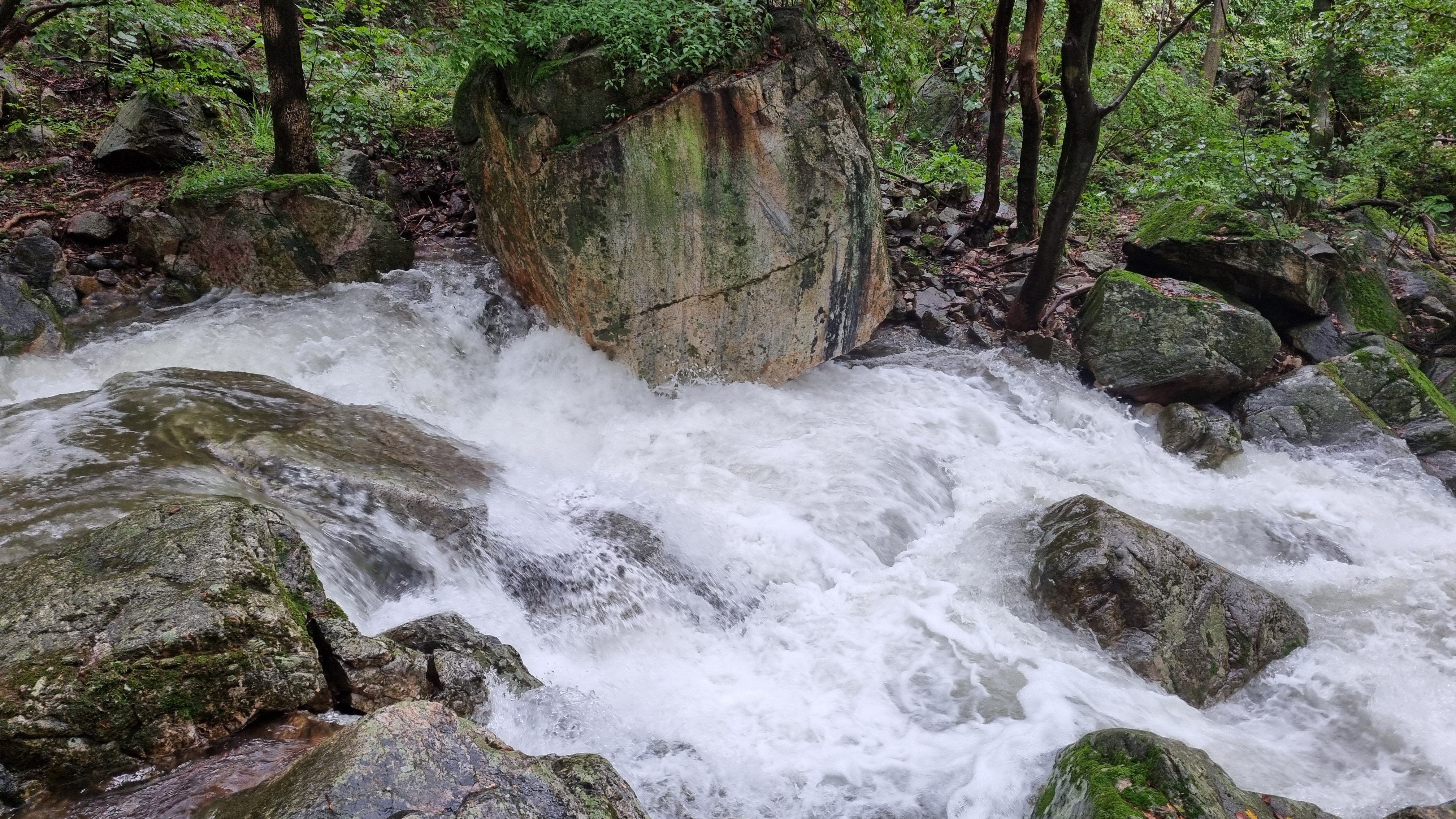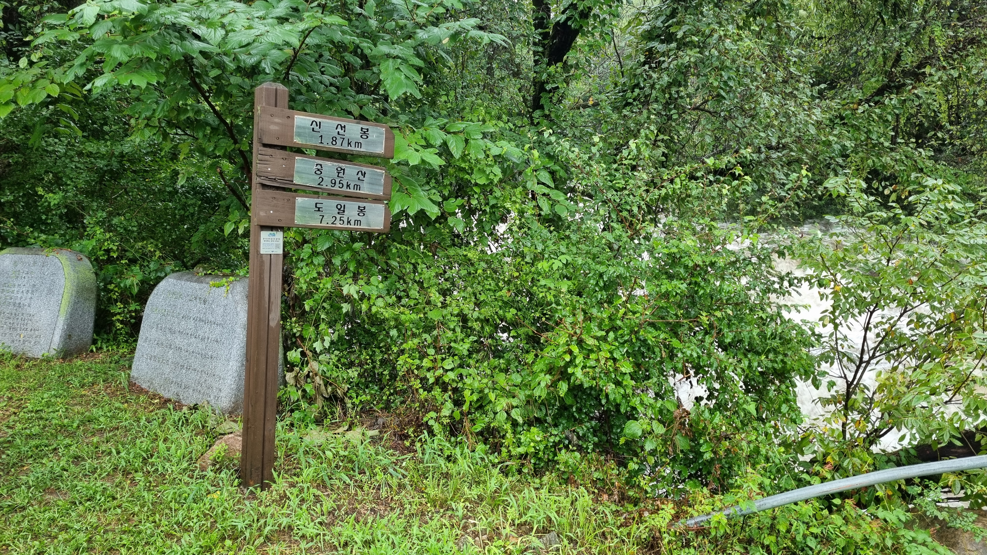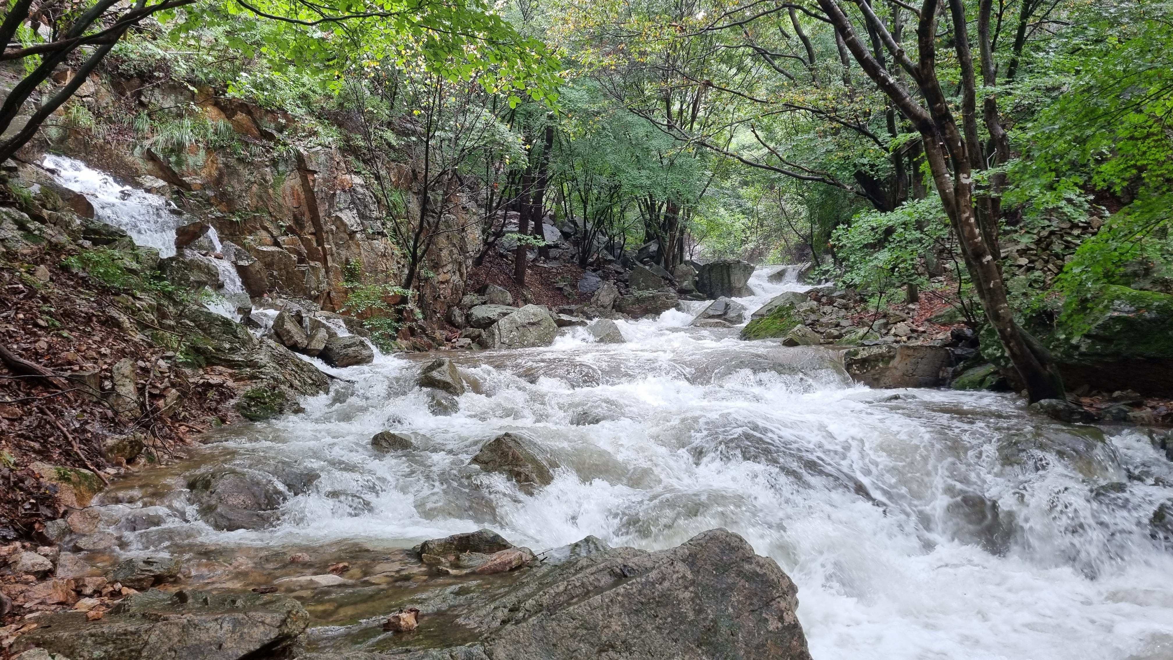 목적지 산행 출발지에 도착하고 보니 계곡물이 넘쳐 흐른다.