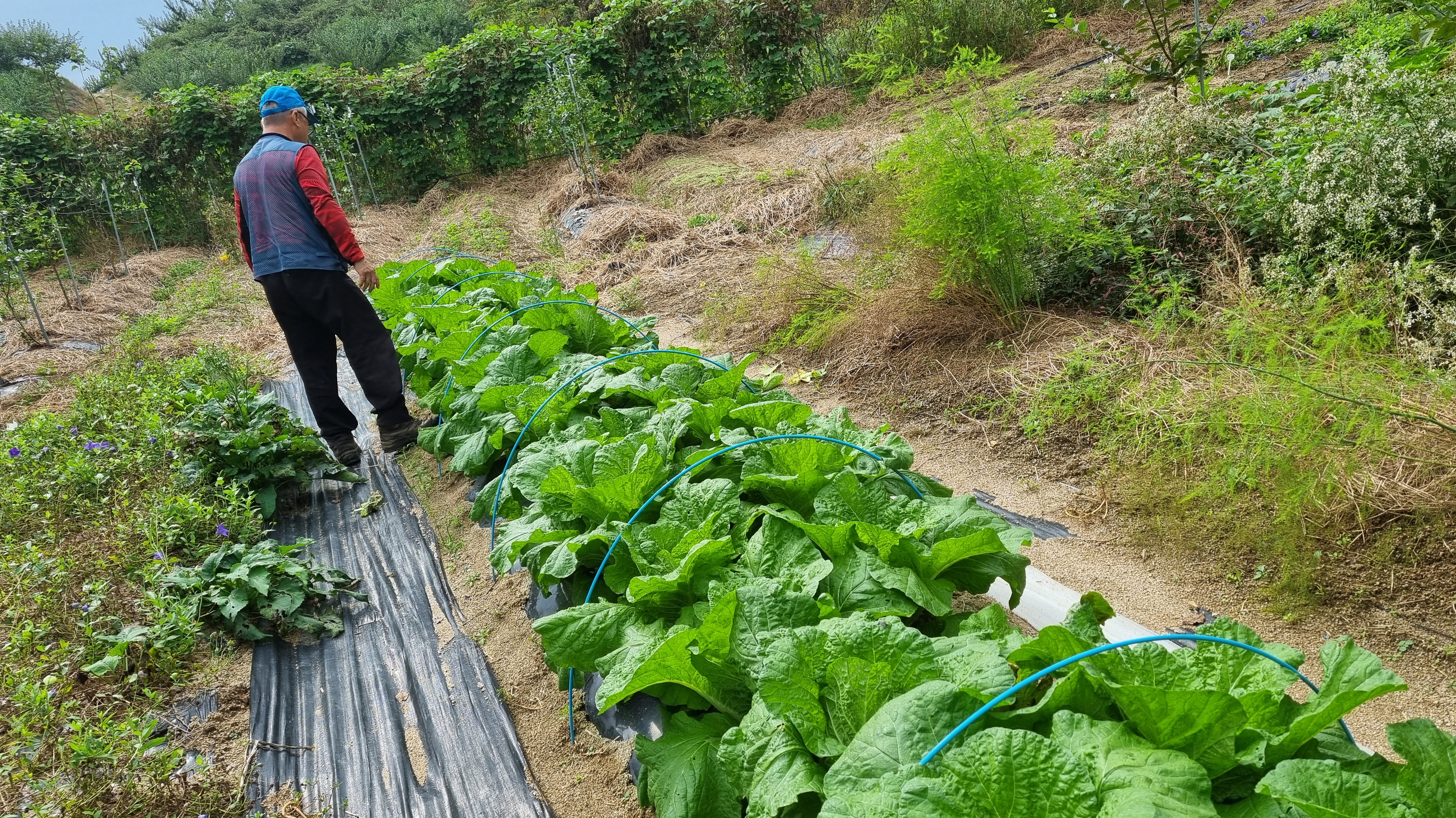 ● 배추 및 무에 설치한 활대 및 한랭사 걷어내기