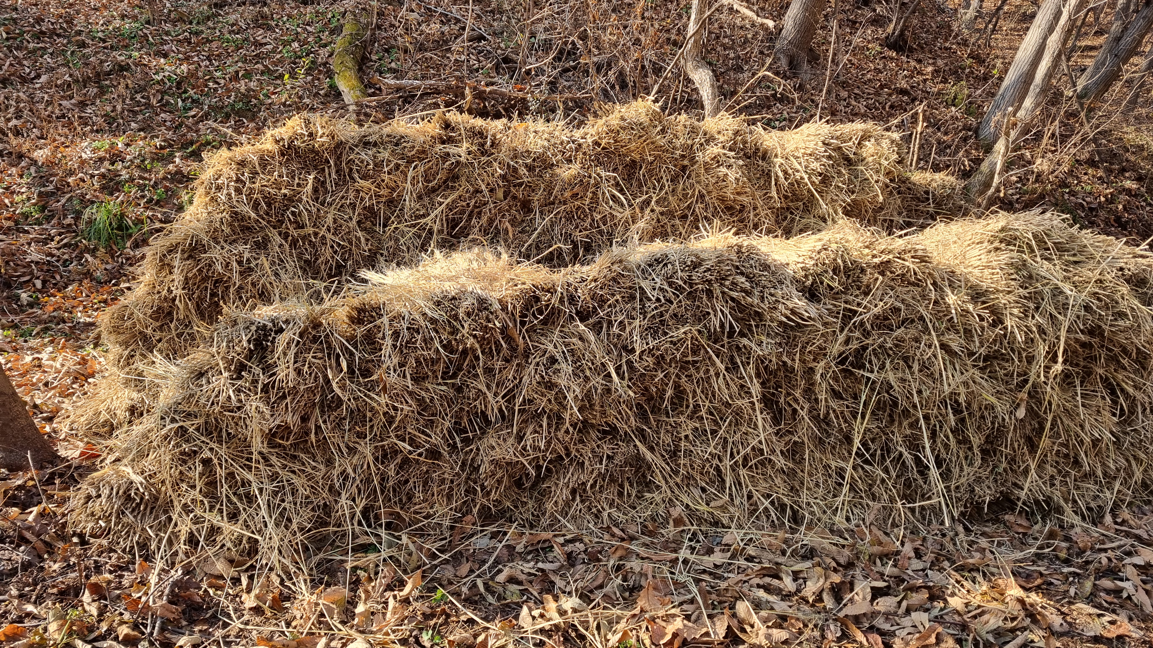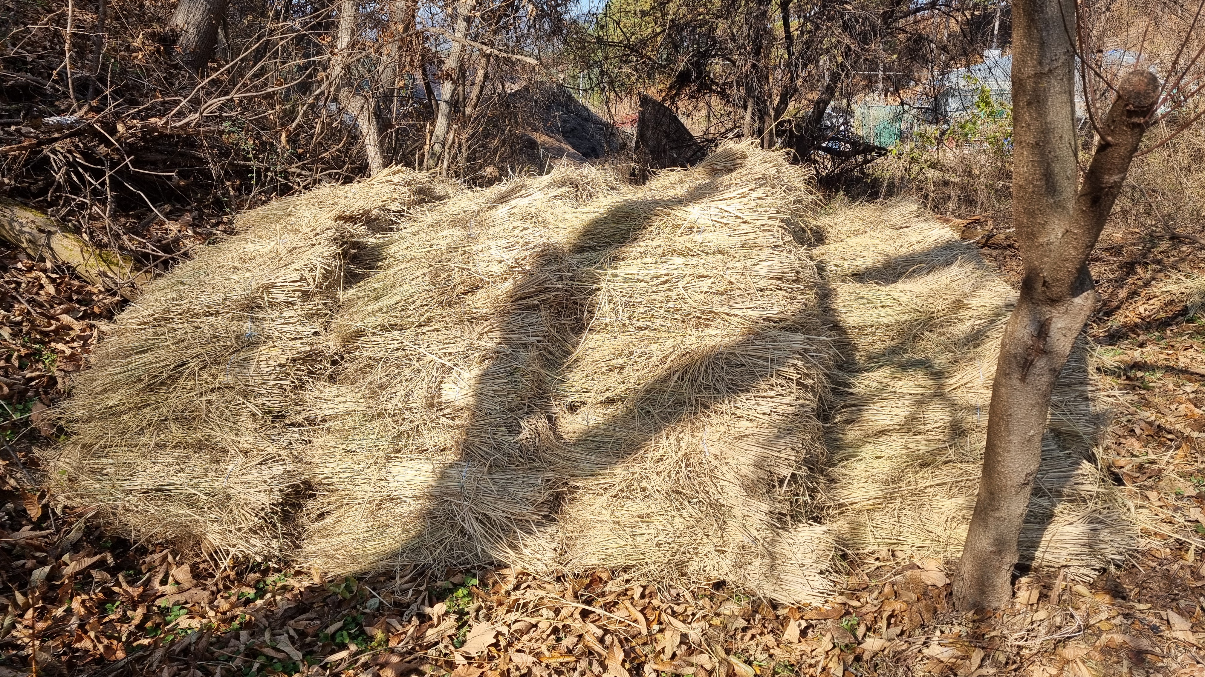 생각보다 볏짚 양이 많아서 옮기는데 무척 힘이 많이 들었음(탑차로 3회).