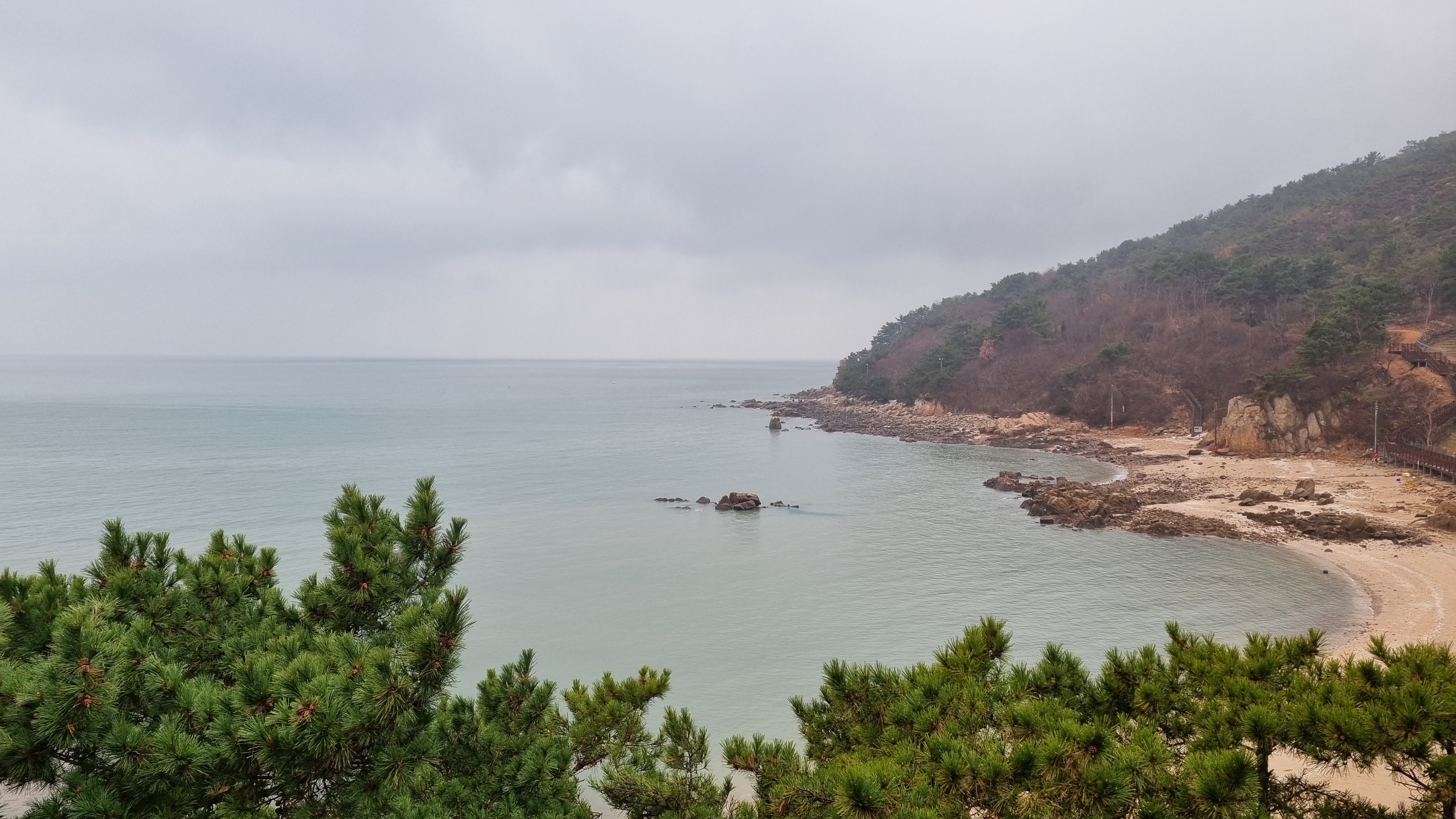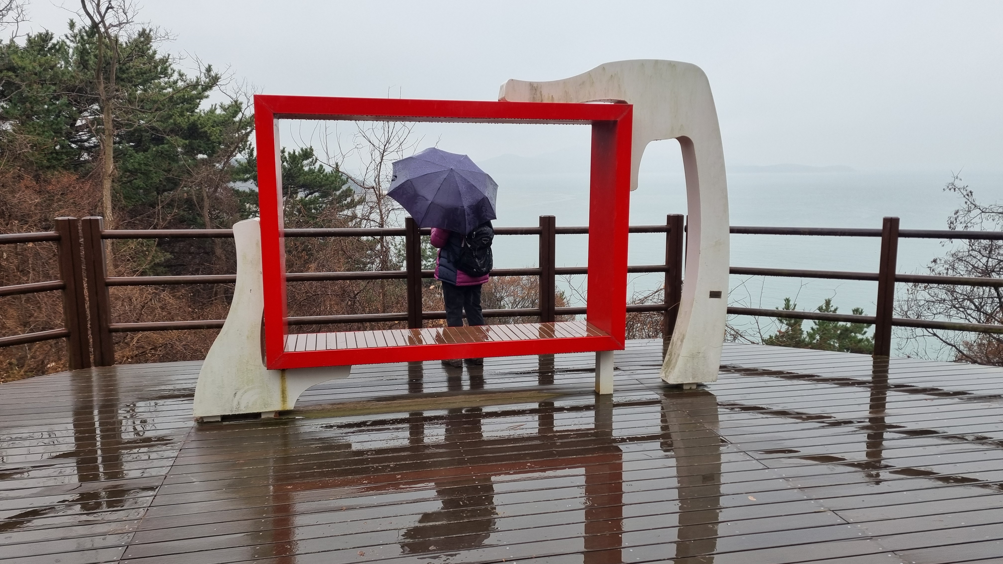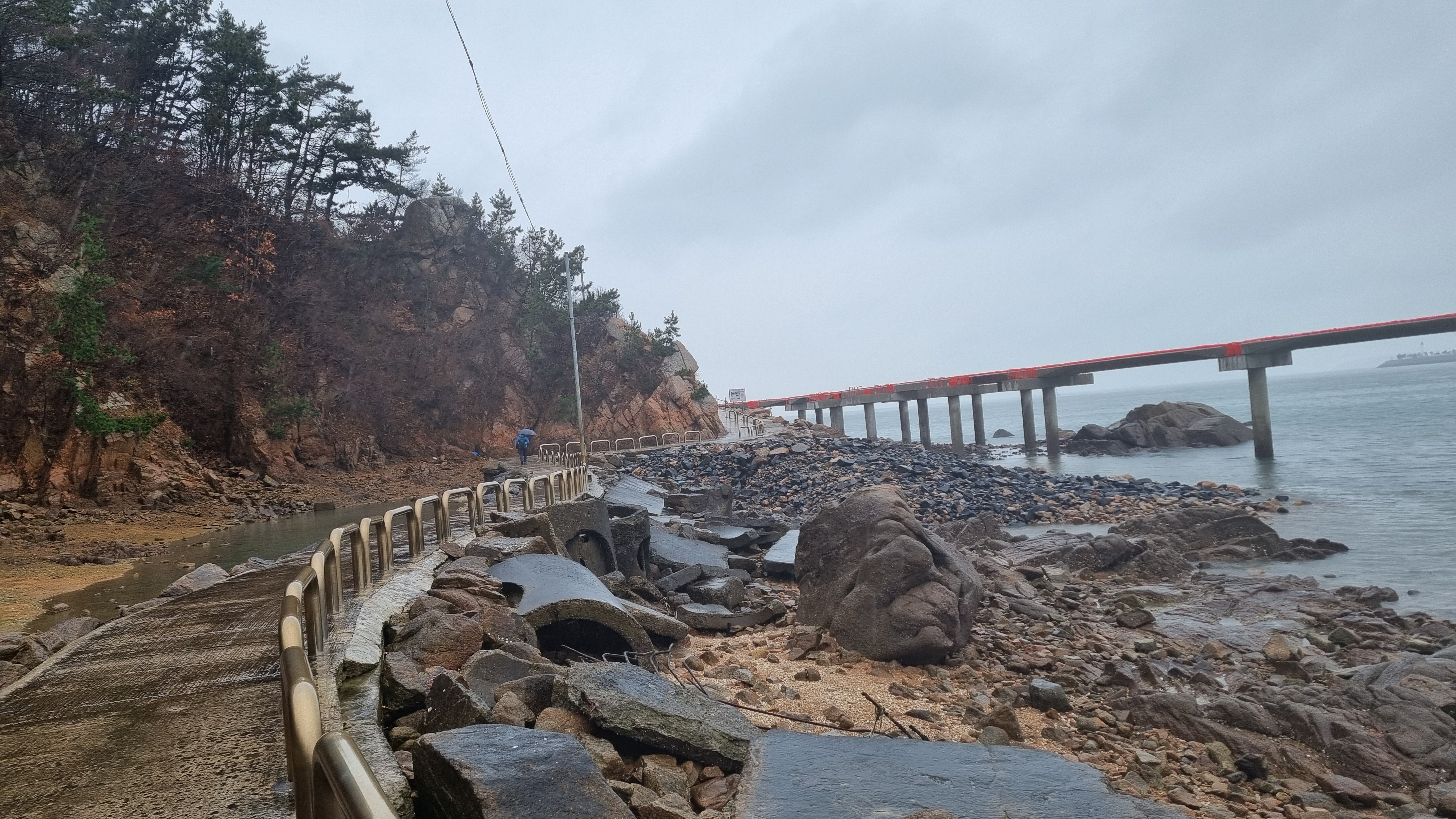 비가 내리는 바람에 어쩔 수 없이 추적추적 비를 맞으며 해안길 걷기