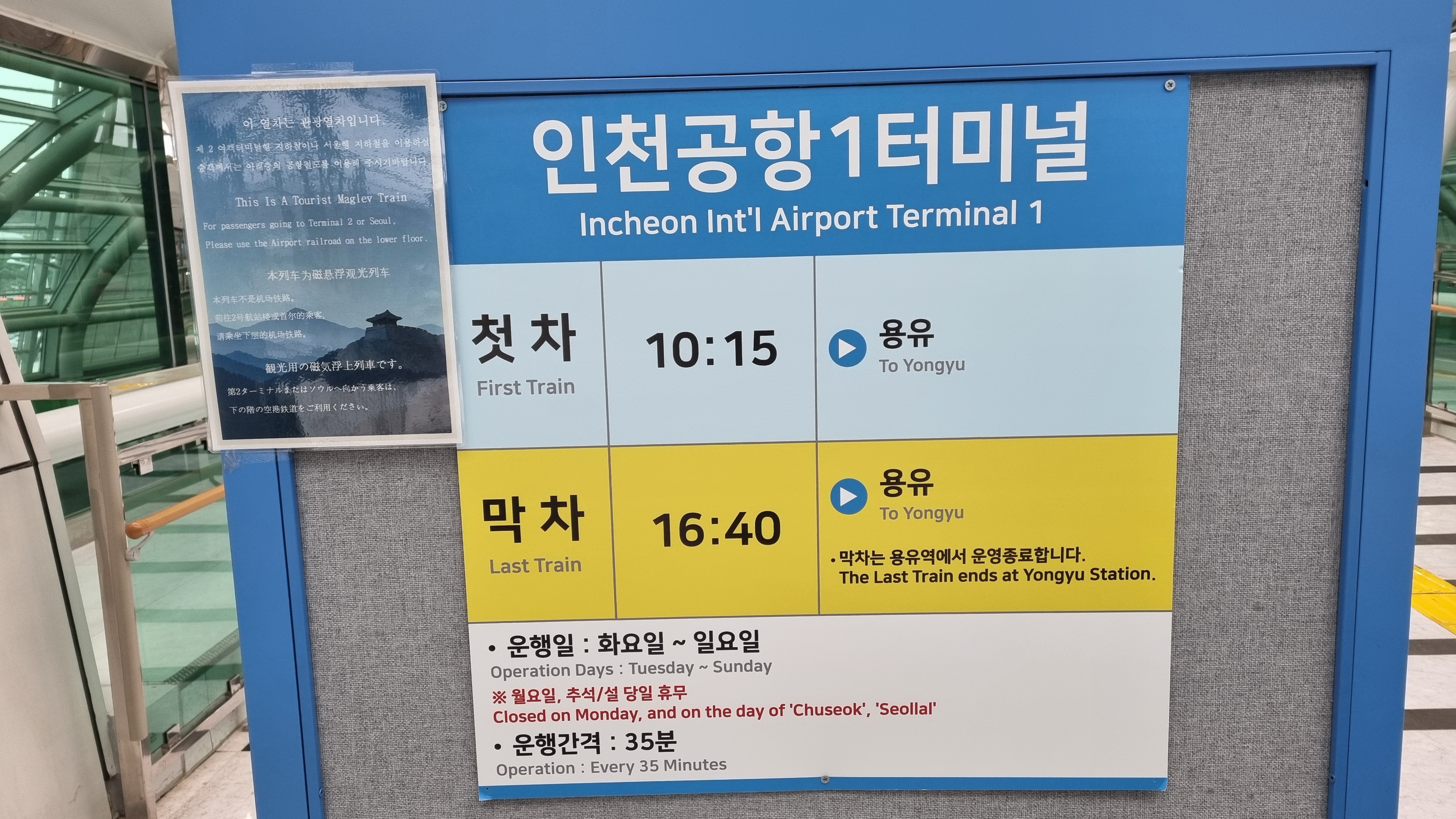 이후 인천공항1터미널에서 공항전철 타고 귀가